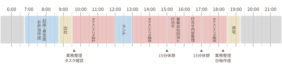 1週間の内3日は横浜で業務アプリケーション開発を、2日は千駄ヶ谷のサザビーリーグ本社でRPA開発業務を行っています。